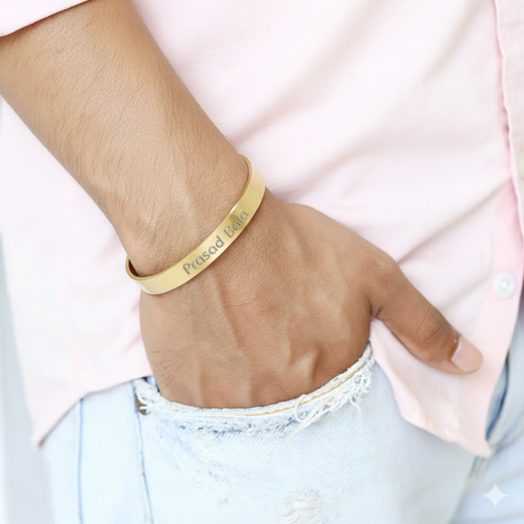A wonderful gift for men who love simple presents. Made with high-quality materials, this bracelet is designed to be durable and stylish. The gold colour and matte finish makes it a unique gift they will love. Since it is highly adjustable it can fit any hand size. Its versatility makes it suitable for daily wear and special occasions. Personalize the bracelet with their name and add a special meaning to this thoughtful present.