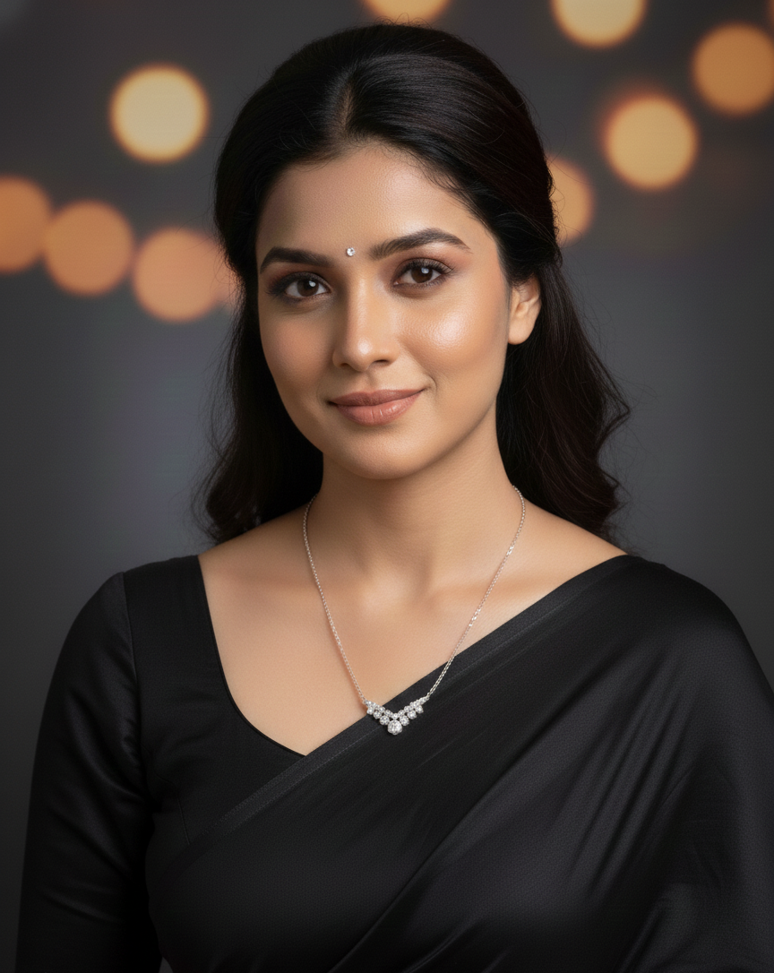 This is a beautiful, silver-toned necklace featuring a sparkling V-shape pendant. The “V” shape is made up of a cluster of small, brilliant white stones (likely diamonds or high-quality cubic zirconia), which are arranged closely together to look like one large, bright gemstone. The shiny metal setting and multiple stones catch the light brilliantly, giving the necklace a glamorous and eye-catching sparkle. This style is both modern and elegant, perfect for dressing up an outfit for a special occasion, or adding a touch of sophisticated shine to your daily wear.