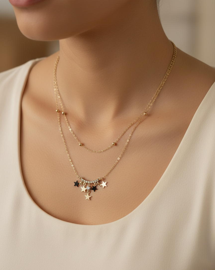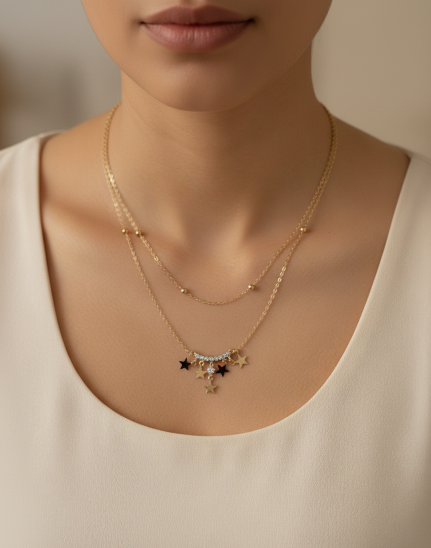 On-Trend Two-Layer Gold Star Pendant Jewelry