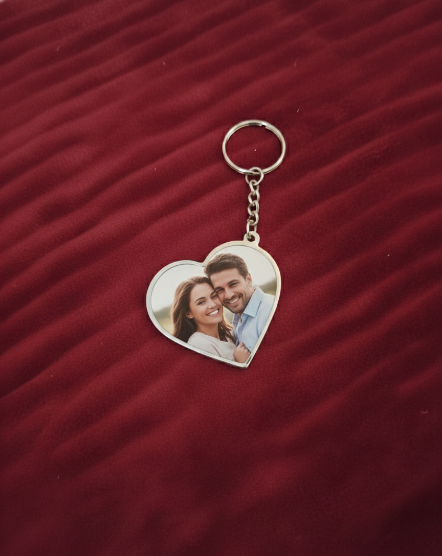 This beautiful, custom-made keychain features a classic heart design with a polished silver-tone metal frame and sturdy keyring. It’s a wonderful way to keep your favorite memories close! The keychain is double-sided, which means you can personalize both sides—you can choose to put a photo on each side, a photo on one side and a special message or date on the other, or even have a message on both sides. It is built to last and makes a perfect, thoughtful gift for any occasion, keeping a cherished moment or sentiment with you every day.