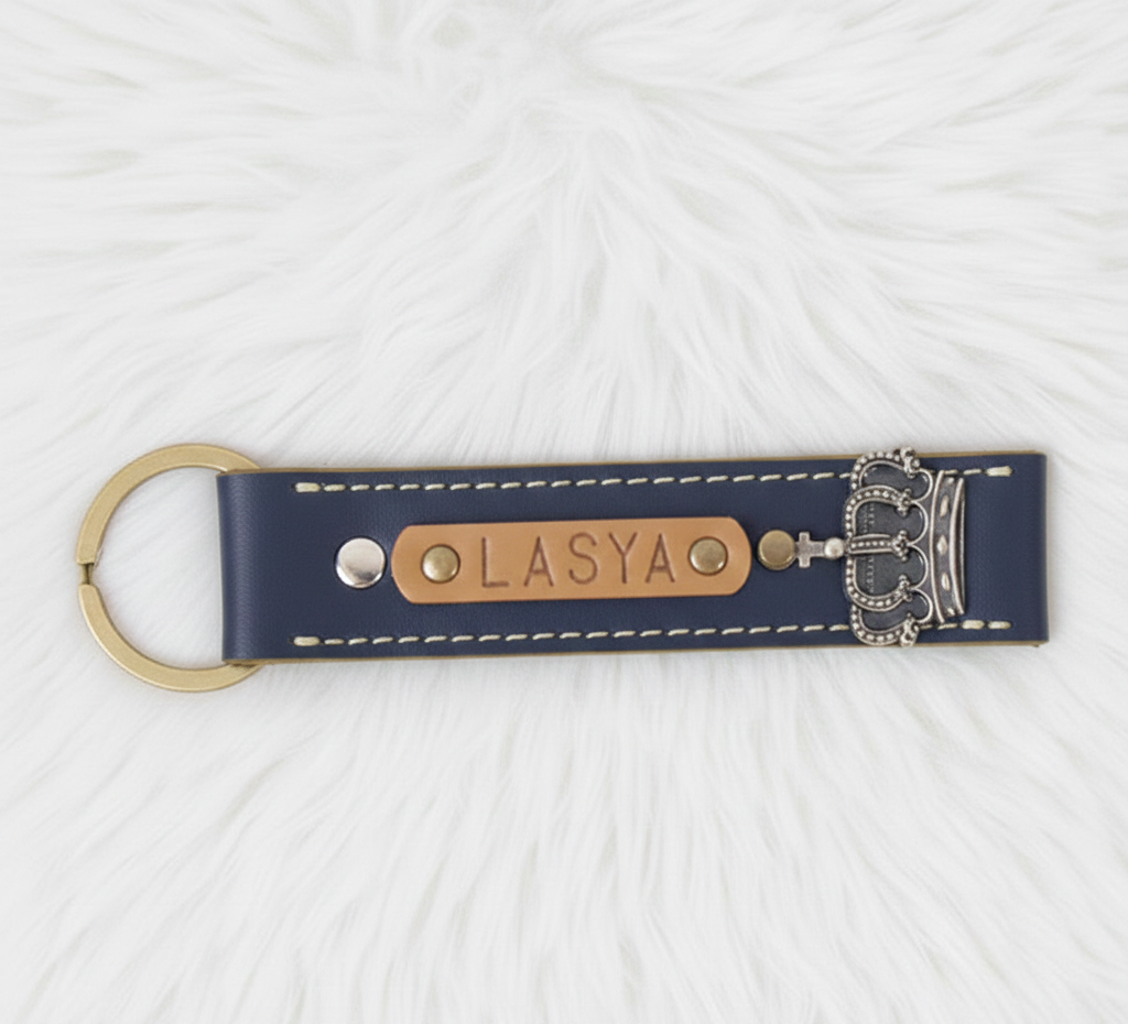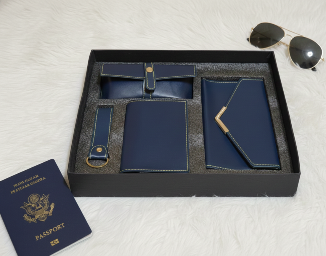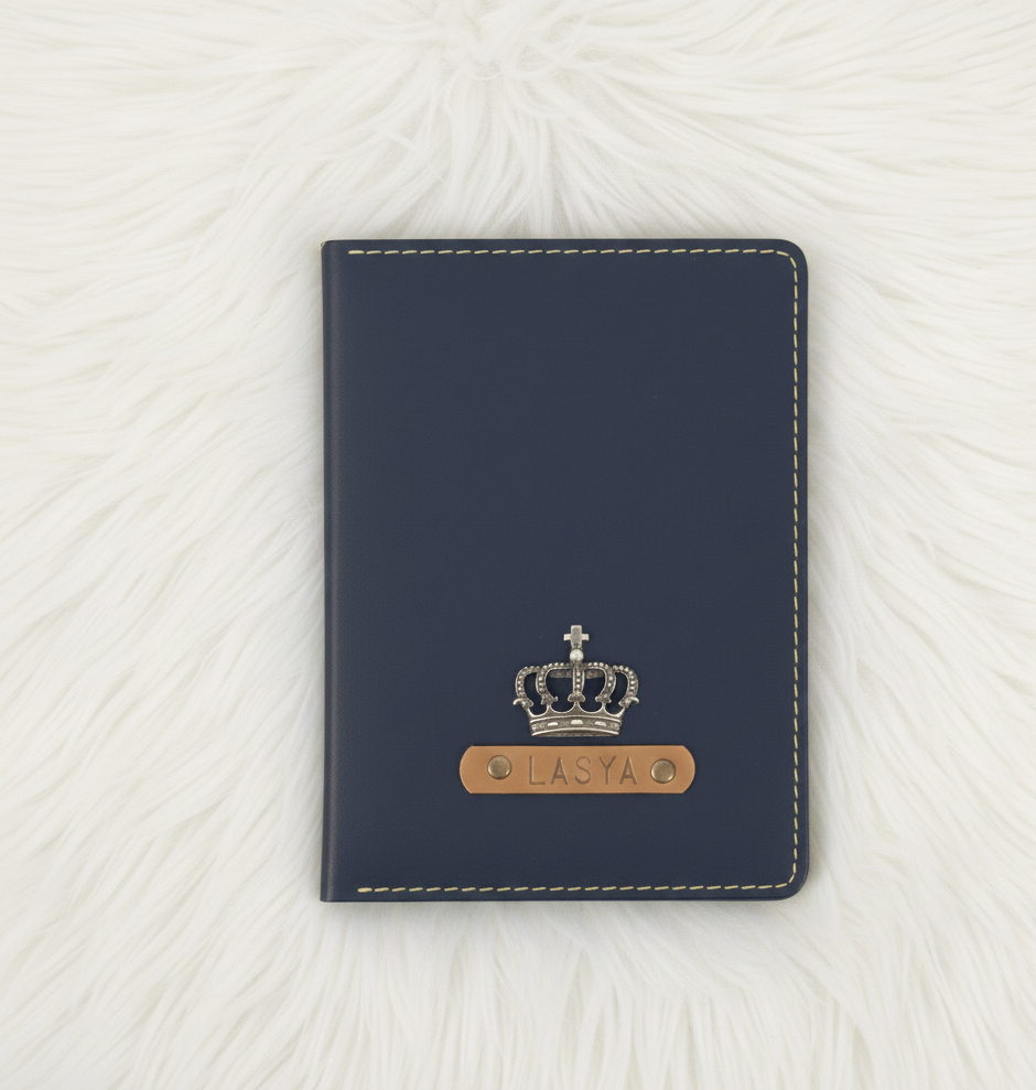 Personalized Tan Leather Essentials-Navy Blue